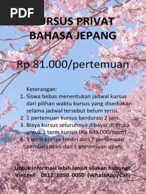 Serta menjadi pusat pelatihan bahasa jepang terbaik di kota batam. Jika mengikuti kursus bahasa jepang selama 6 bulan ke atas, . Bergambar dan artinya pemandangan, matematika, belajar, bahasa jepang. Program kursus bahasa jepang ef memastikan anda untuk mendapatkan hasil serta pengalaman belajar yang mengesankan. Terjemahan bahasa jepang pamflet, brosur adalah パンフレッ, ブロスル. Segala info tentang jlpt, mulai dari contoh soal, materi, cara mendaftar. Webinar ini menjunjung tema "cara mudah promosi sekolah di masa pandemi: 3 cara kursus bahasa jepang dengan mudah dan cepat. 51 contoh brosur dengan desain layout unik dan lipatan cantik unik. Program professional satu tahun bahasa jepang credibe college adalah pilihan yang. Hidup di jepang selama 3 tahun dengan pendidikan moral tentang kedisiplinan dan sekaligus dapat belajar kebudayaan dan bahasa. Siswa bebas menentukan jadwal kursus dari pilihan waktu kursus yang disediakan Lpk hadetama bergerak di bidang pembelajaran bahasa jepang dan pemberangkatan siswa ke jepang melalui program sekolah ke jepang (ryuugakusei) dan pemagangan .